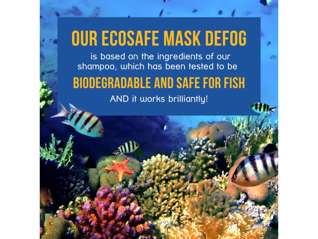 Náš odmlžovač masky je založen na složkách našeho šamponu, který byl testován jako biologicky odbouratelný a šetrný k útesům a rybám – NAVÍC funguje skvěle!